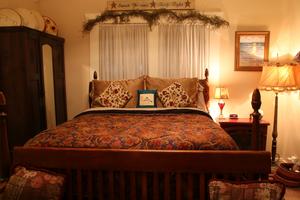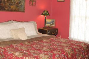 The Romantic Haven makes a cozy intimate get-a-away overlooking the courtyard garden. This cottage is furnished with a king-size bed a private bath with tub and shower and a comfortable sitting and dining area.